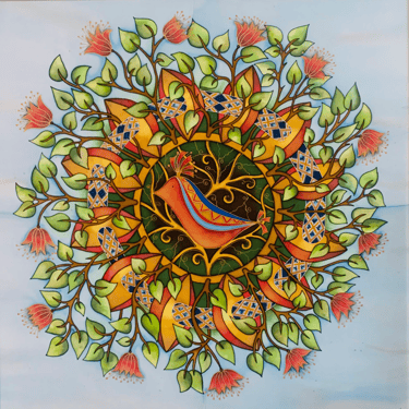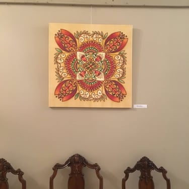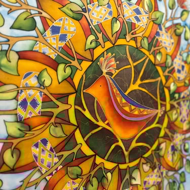 Šilko tapyba (šilkas aptrauktas ant porėmio) Pagaminimo metai: 2018 Dydis: 80x80 cm.