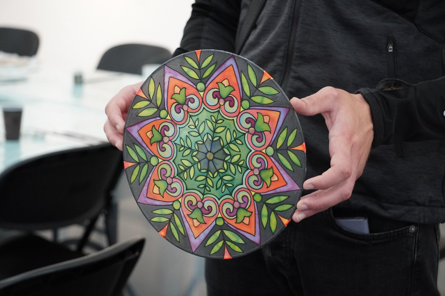 Užsiėmimas nereikalauja meninių įgūdžių, leidžia pasitikėti procesu, pasiduoti spalvų tekėjimui, o švelnus kūrybinis veiksmas mažina stresą ir stiprina vidinę ramybę.