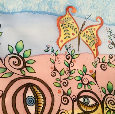 Šilko tapyba (šilkas aptrauktas ant porėmio) Pagaminimo metai: 2020 Dydis: 80x100 cm.