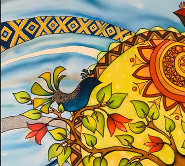 Šilko tapyba (šilkas aptrauktas ant porėmio) Pagaminimo metai: 2018 Dydis: 80x100 cm.