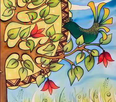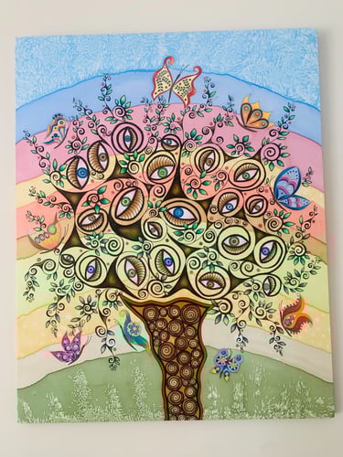 Šis paveikslas įkūnija nenutrūkstamą gamtos ir žmogaus ryšį. Medis – kaip pasaulio ašis, tvirtai, šaknimis įaugęs į protėvių žemę, o šakomis besiremiantis į dangų. Paukščiai šakose, tarytum gyvybės nešėjai, simbolizuoja nuolatinį atsinaujinimą bei atgimimą. Saulės motyvas kūrinyje spindi kaip kūrybos ir gyvybinės energijos šaltinis, iš kurio stiprybės semiasi visi pasaulio gyviai. Lietuvių liaudies tautinių juostų raštai bei ornamentai tarytum jungtis tarp praeities ir dabarties kartų, primena mums, kad be savosios kultūros žinojimo negalimas tolimesnis, pilnavertiškos ateities kūrimas. Tai pasakojimas apie darną tarp žmogaus ir gamtos, tarp mūsų praeities ir ateities.